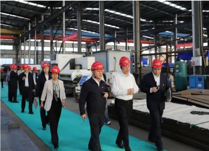 馮能斌副市長一行聽取了楊明波董事長關于企業發展情況的匯報,深入車間詳細了解了企業自主研發的智能化橋隧襯砌臺車、高鐵900噸液壓大箱梁、液壓掛籃、液壓棧橋等智能化工程特種裝備產品,對企業在細分領域和產業鏈強鏈補鏈中的關鍵重要作用給予充分肯定,鼓勵企業要不斷加大研發投入,推動技術進步和產業升級,推動數字化、智能化、綠色化轉型,實現經濟效益和社會效益的雙贏,以提升核心競爭力和長遠發展潛力。